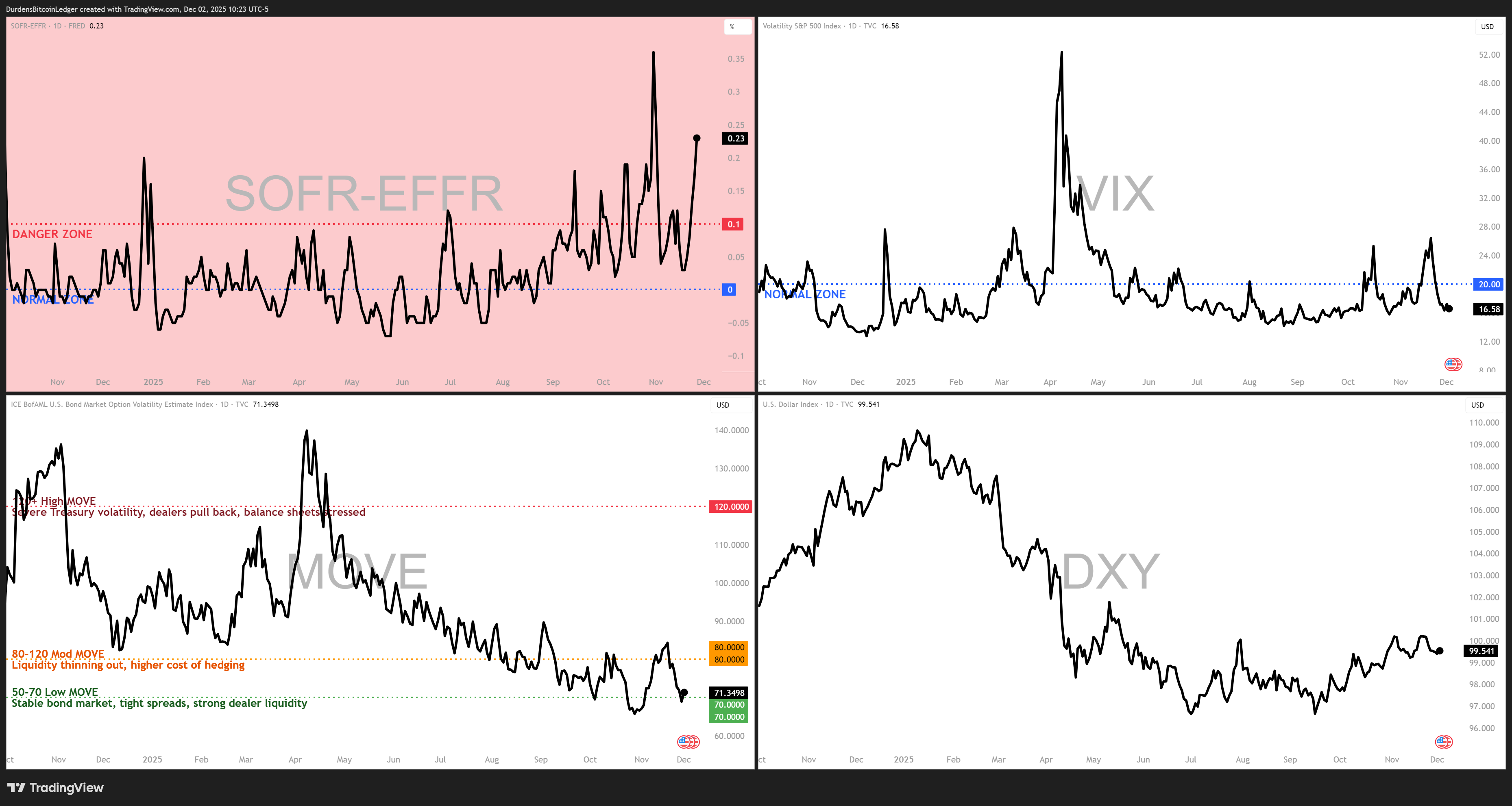 Here is a view of my ‘stress dashboard’ which is a super simple composite of the SOFR Spread, VIX, MOVE & DXY. Feel free to copy it and use it yourself.