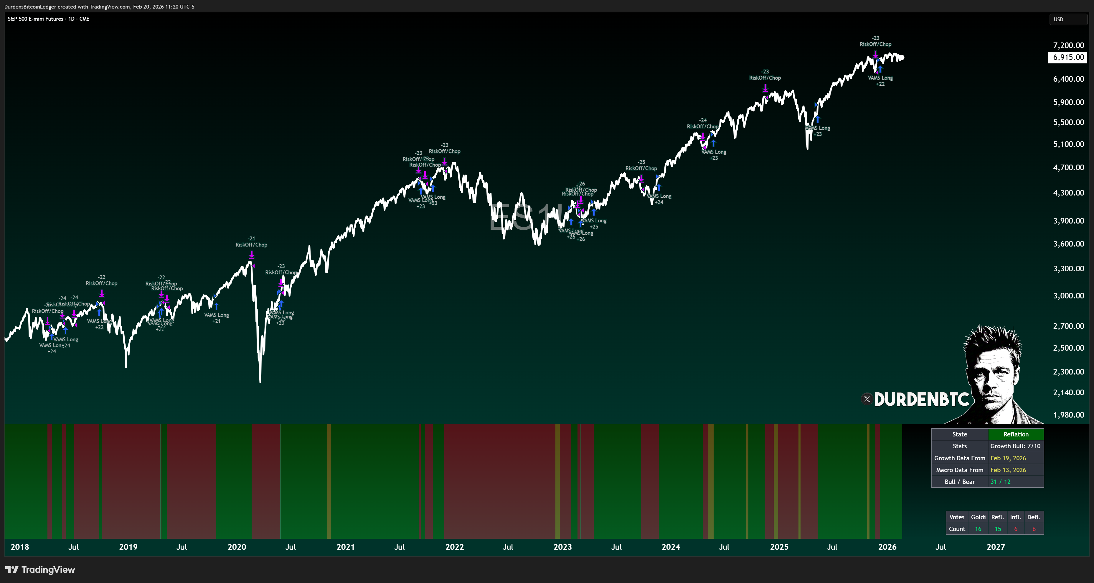 But here’s the thing, I don’t trade price action with my feelings. I trade the regime. And the regime is still unambiguously bullish for equities. 31 votes bullish, 12 bearish. That’s not even close.