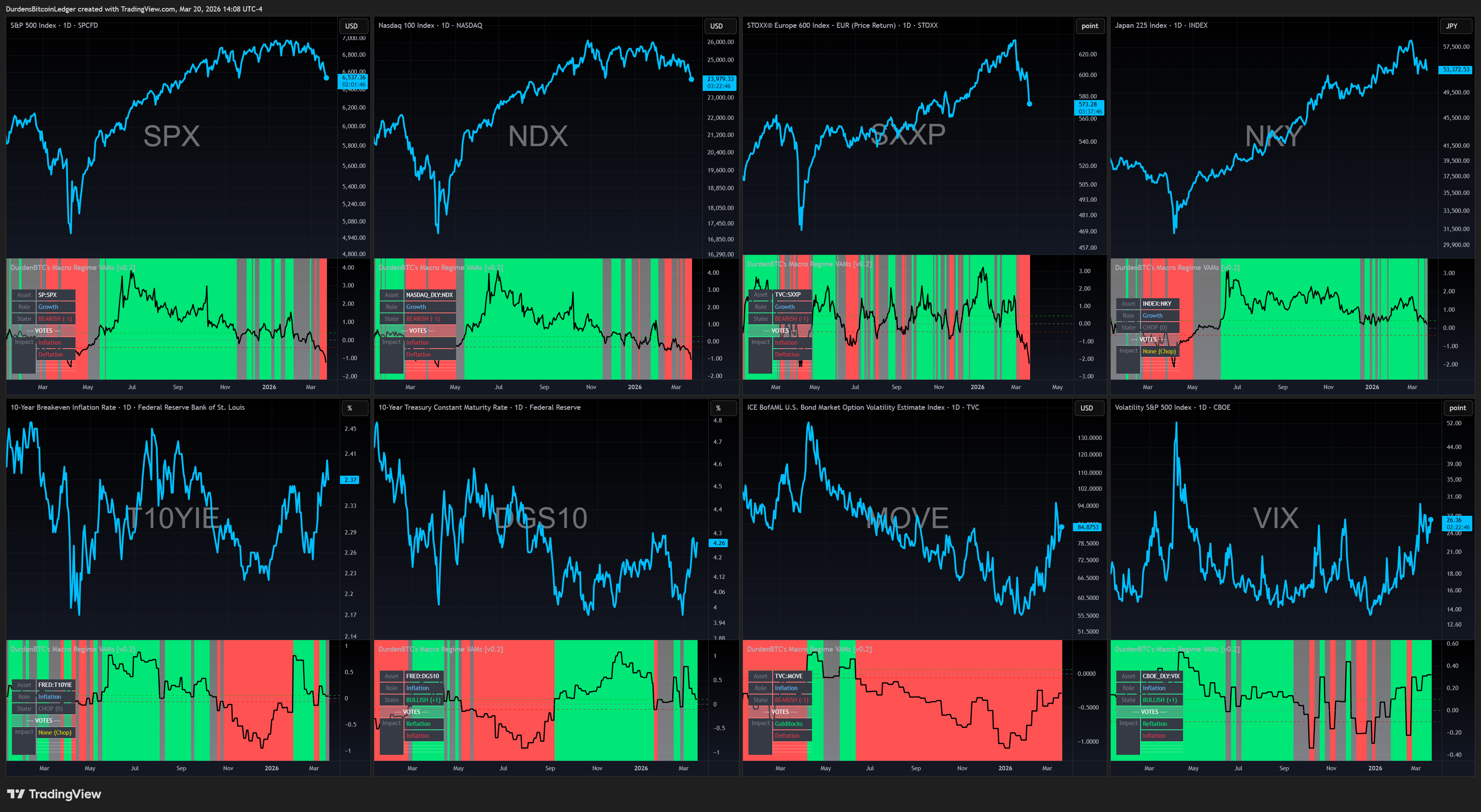 This is what the engine sees under the hood. This is why it’s giving the signal it’s giving. The rot isn’t just in equities (NKY for example is still technically in a bullish uptrend).. it’s in the deeper macro layer: inflation expectations, commodities, oil, the Dollar breakout, bond volatility, VIX sustained above 26.