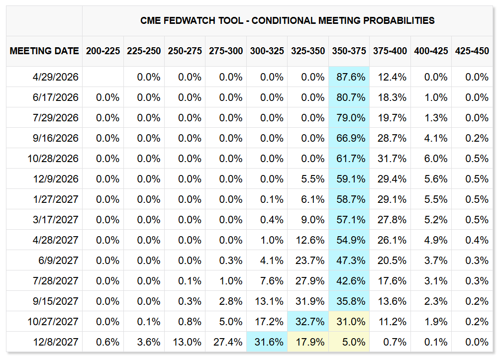 Next meeting: 87% chance of no change.. but a 12.4% chance of a rate HIKE. Not a cut. A hike.