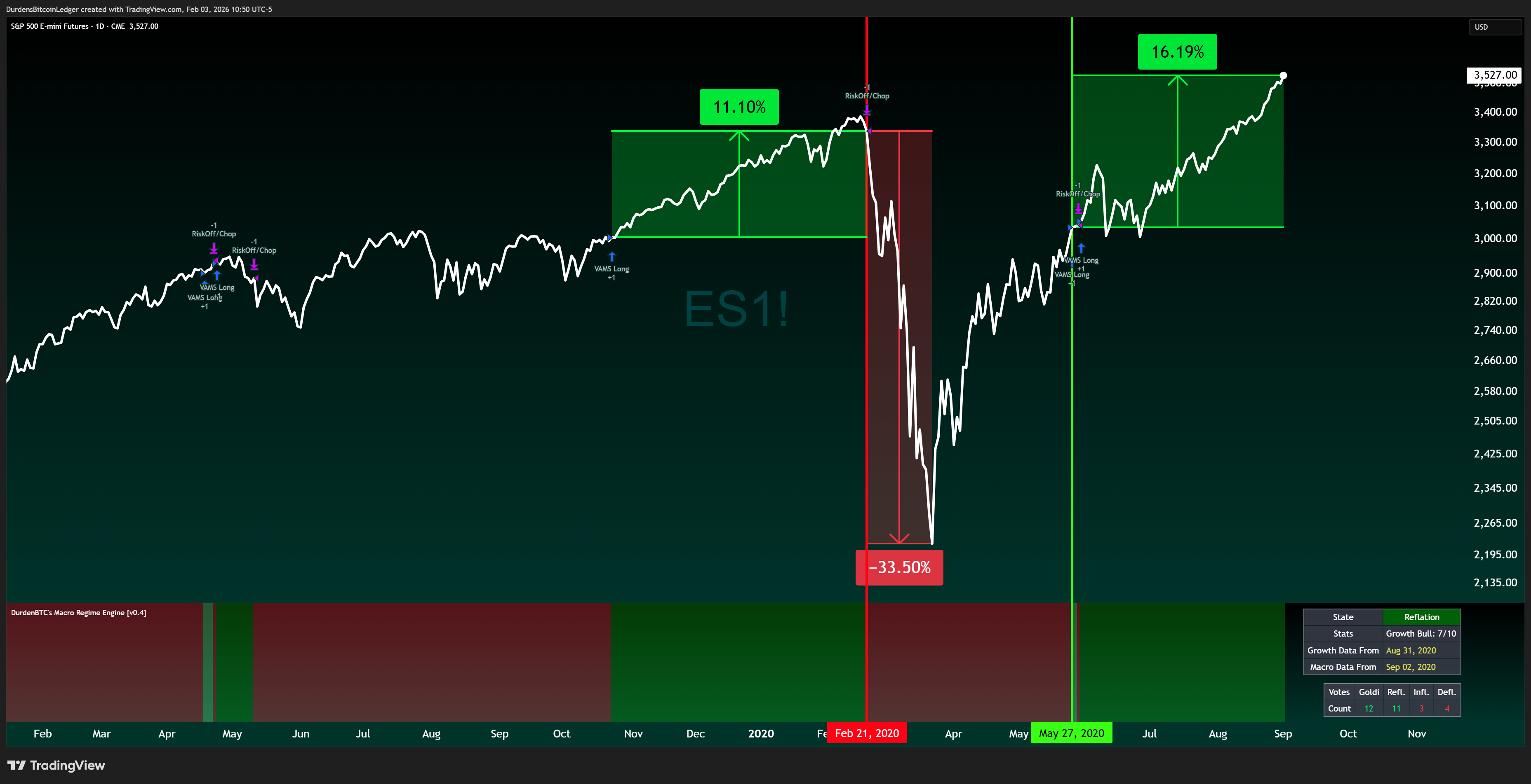 In February 2020, my Macro Regime Engine, a system that reads momentum signals across global equities, bonds, currencies, commodities, credit, and volatility to classify the macroeconomic environment.. exited its long position in the S&P 500.