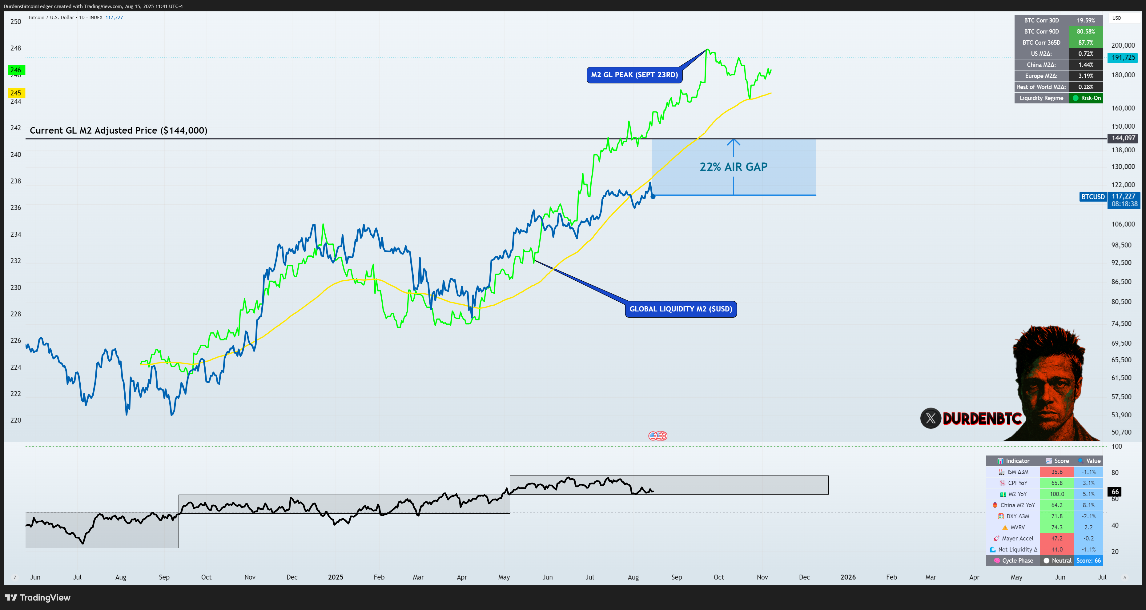 We nearly closed the “air gap” between Bitcoin and global liquidity (17% at peak) before one Wednesday print derailed momentum. Still, liquidity’s forward-looking picture has rebounded, pushing above trend.. and that keeps the macro bias firmly Risk-On.