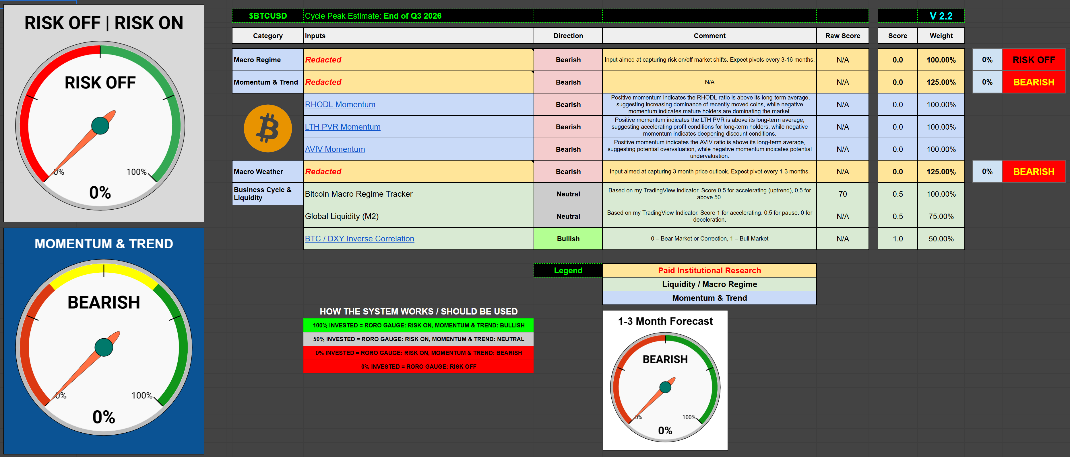 If we flip back to Risk-On with bullish trend/momentum, I’ll go full port again. Until then, defense first. The goal is survival and staying liquid for the next big macro leg up.