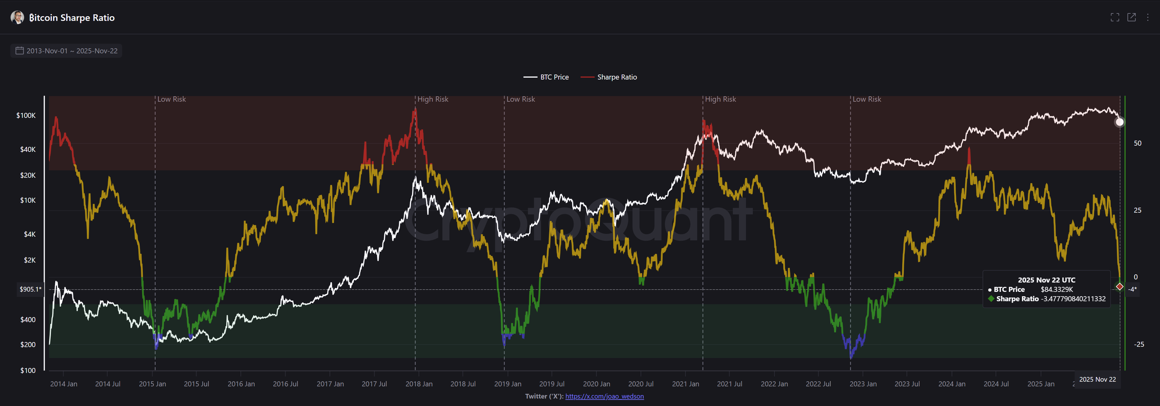 Sharpe ratio signal just flashed green.. which historically happens near cycle lows.