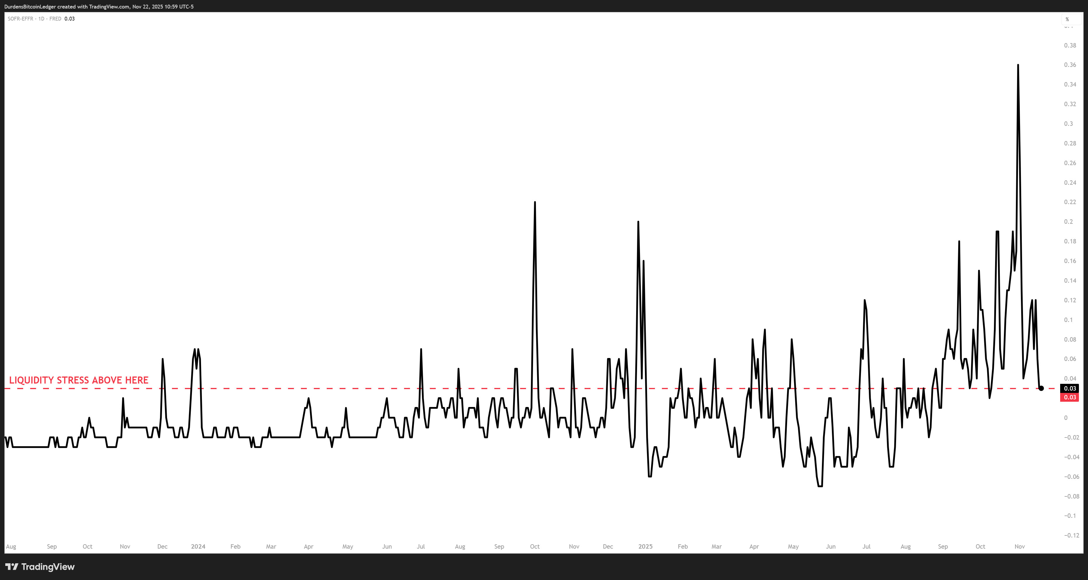 The SOFR-Fed Funds spread has flipped positive & is trending in the wrong direction.