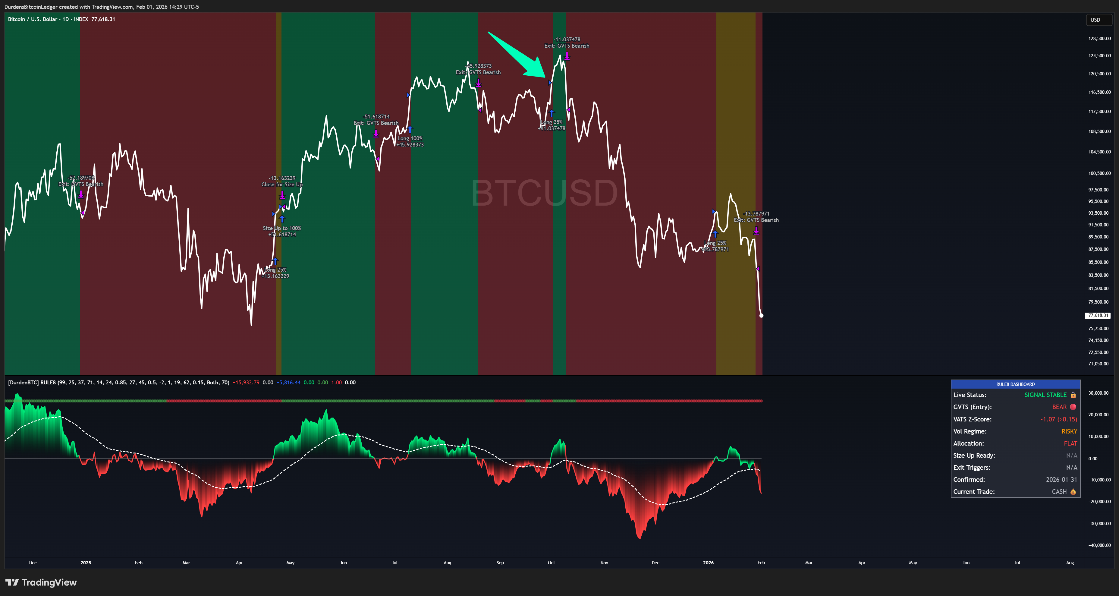 Since the eighth rule signal went full cash/bearish last week on Thursday close, Bitcoin is down an additional -8.1% that we thankfully have avoided because we all follow the system ruthlessly and without emotion.