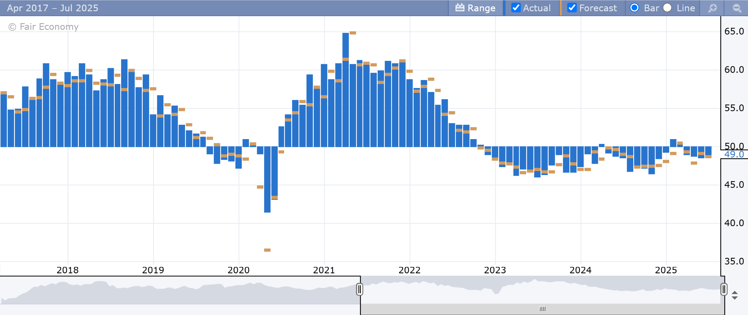 🏭 ISM Manufacturing PMI: Still Under 50, But Climbing